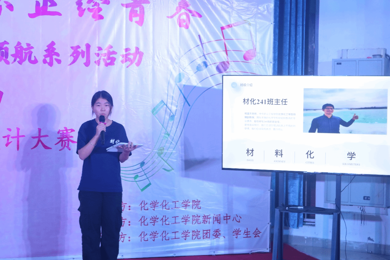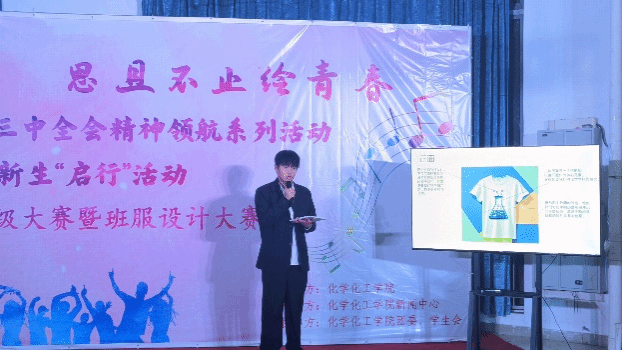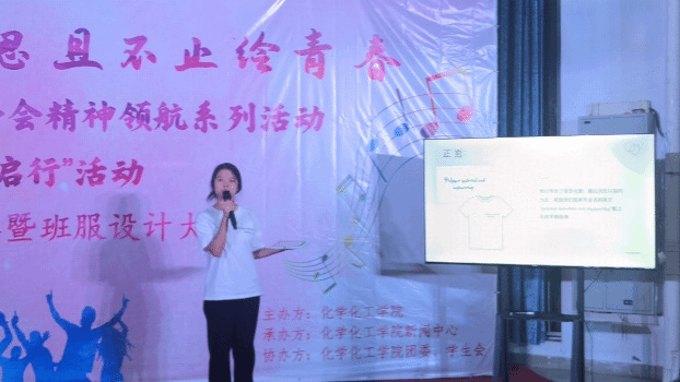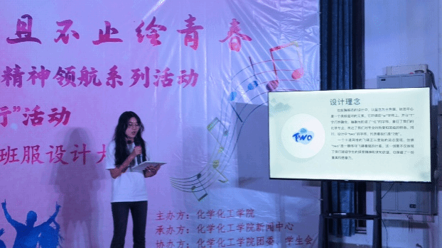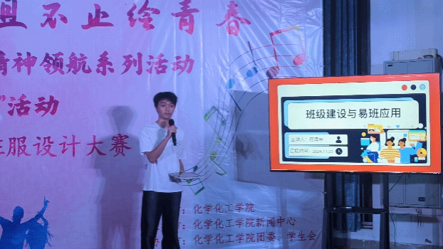 随后,各班解说员通过PPT详细阐述了班级易班建设成果及班服设计理念。化学工程与工艺241班的班服设计寄托了他们对未来的美好憧憬和对专业的深厚热爱;应用化学241班以锥形瓶为设计核心,彰显了对化学学科的执着追求;应用化学242班则将班级口号融入设计,表达了将智慧转化为力量,共创未来的坚定信念;材料化学241班班服背面的青竹设计,象征着坚韧不拔、积极向上的精神风貌;高分子材料与工程241班的班服设计则巧妙融合了化学学科的趣味性,激发了同学们的无限创意。