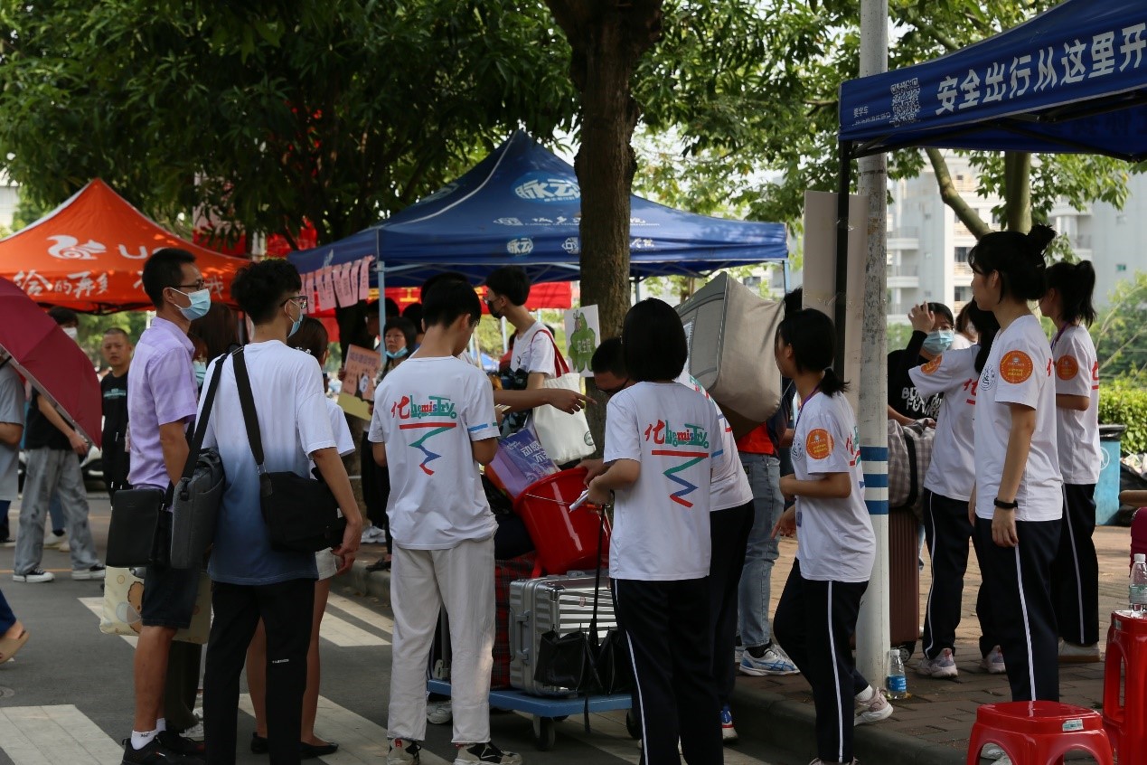 在迎新现场,志愿者们不停地穿梭在校园上,细心、耐心地引导新生,帮助新生搬运行李,并热情介绍校园环境以及一些生活经验。2021级新生班主任助理发挥着学生党员的志愿服务精神,认真、细致地完成了新生办理入学的每一道手续。此外,院党委书记邱树华慰问迎新志愿者及2021级新生班主任助理,对他们的工作给予表扬及肯定。院党委副书记严丽纯走访学生宿舍,关心慰问新同学,与新同学进行亲切的交流。