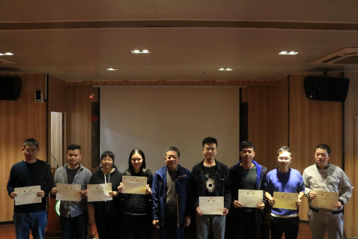 研究生工作总结环节结束后,全体研三学生分别汇报了自己就读期间的科研工作,六位评委专家林海琳教授、葛建芳教授、蒋旭红教授、周红军教授、龚圣副教授、程杏安副教授就研究生汇报的内容、选题、ppt质量及语言表达进行了打分评比,最终评选出一等奖两人,分别为:蚁明浩、陈龙;二等奖三人,分别为叶静敏、温洪坚、曹鼎鼎;三等奖四人,分别为纪建业、谢志凯、王铭杰、邱松发;鼓励奖八人。