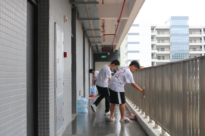 在宿舍长明确分配任务后,化学化工学院学子不嫌脏,不怕苦,积极打扫卫生。在打扫完自己宿舍过后,同学们还参与了公共区域的清洗,为学生公寓的整洁奉献出自己的一份力量。在同学们的共同努力下,楼层环境焕然一新。