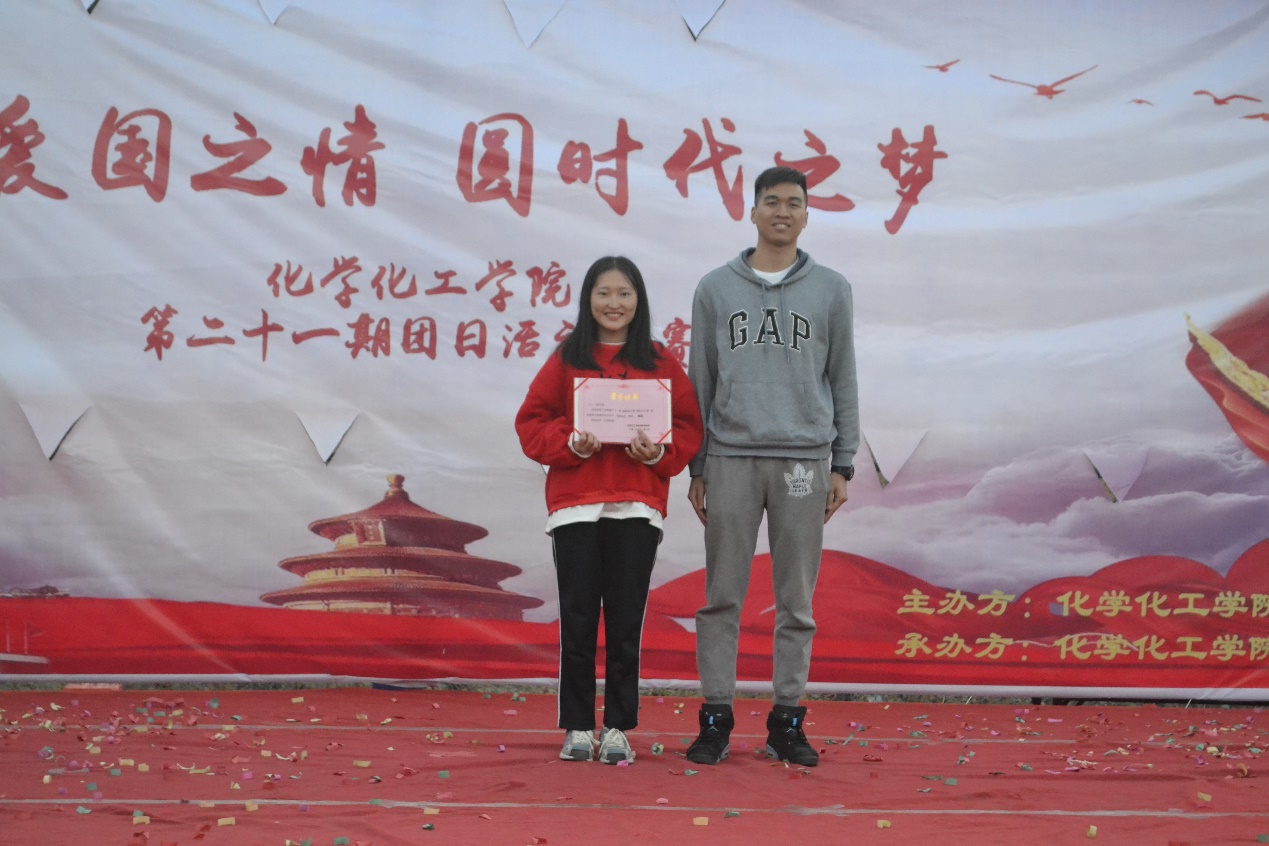 12月8日下午,化学化工学院第二十一期团日活动复赛在白云校区七栋楼下篮球场如期举行。出席本次活动的嘉宾有化学化工学院团委副书记徐冠东、团委书记团、学生会主席团、新闻中心主任团、校团委代表以及各兄弟学院代表。化学化工学院应用化学192班、高分子材料与工程192班等六个班级参加了本次团日活动复赛。
