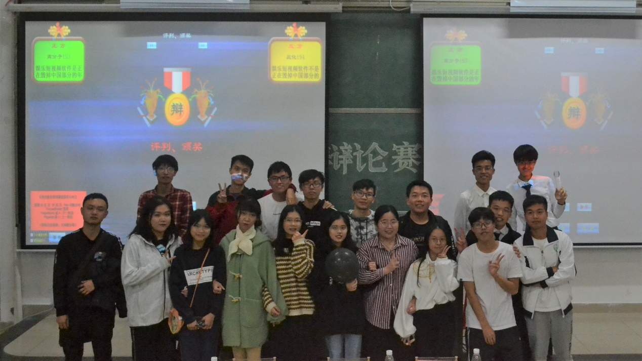 经过短暂休息后,高分子材料与工程193班和应用化学194班将进行冠亚军的角逐。辩题是娱乐短视频软件是否正在毁掉中国部分的年轻人,正方是高分子材料与工程193班,反方是应用化学194班。正方辩手认同娱乐短视频虽然有积极反馈、调节压力的作用,但是不排除部分视频中存在低俗内容、不良信息等诱惑影响、产生思想上误导易形成扭曲价值观等论点来立论。反方辩手则认为“毁掉”一词陈词严重,并通过列数字,举例子等方式阐述他方观点。双方都将自己的观点一一罗列出来,充分展示出了辩论双方的逻辑条理性与临场应变能力。最终,获得本次辩论赛的冠军班级是应用化学194班,亚军班级是高分子材料与工程193班,季军为应用化学191班,其中应用化学193班获得最佳组织奖,应用化学194班的第三辩手刘宇航获得了最佳辩手奖。
