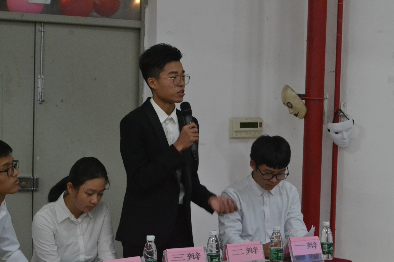 本次决赛分为季军赛和冠军赛。首先是进行季军赛,辩题是应不应该限制艺人的天价酬劳,正方是应用化学193班,反方是应用化学191班。正方辩手通过市场规律、经济平衡等方面阐述应该限制艺人的天价片酬;而反方辩手们认为正方以偏概全,应当理性分析。现场辩论双方各有论点,比赛处于白热化阶段。最终反方辩手技高一筹,获得胜利。随后由辩论队17届队长雷世琼对比赛进行点评,她指出了双方的不足并希望辩手们辩论时自信且有底气,语言简洁并富有逻辑性。