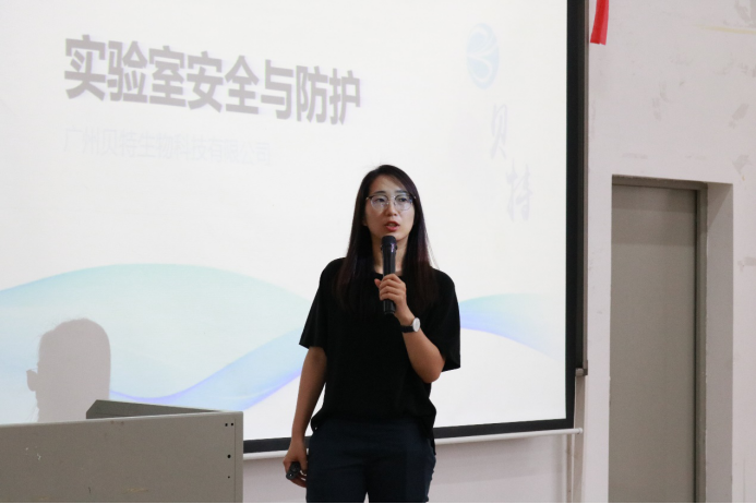 5月23日上午,由我院承办,由广州贝特生物科技有限公司禹菡冰工程师主讲的实验室安全防护讲座在D2小礼堂举行。